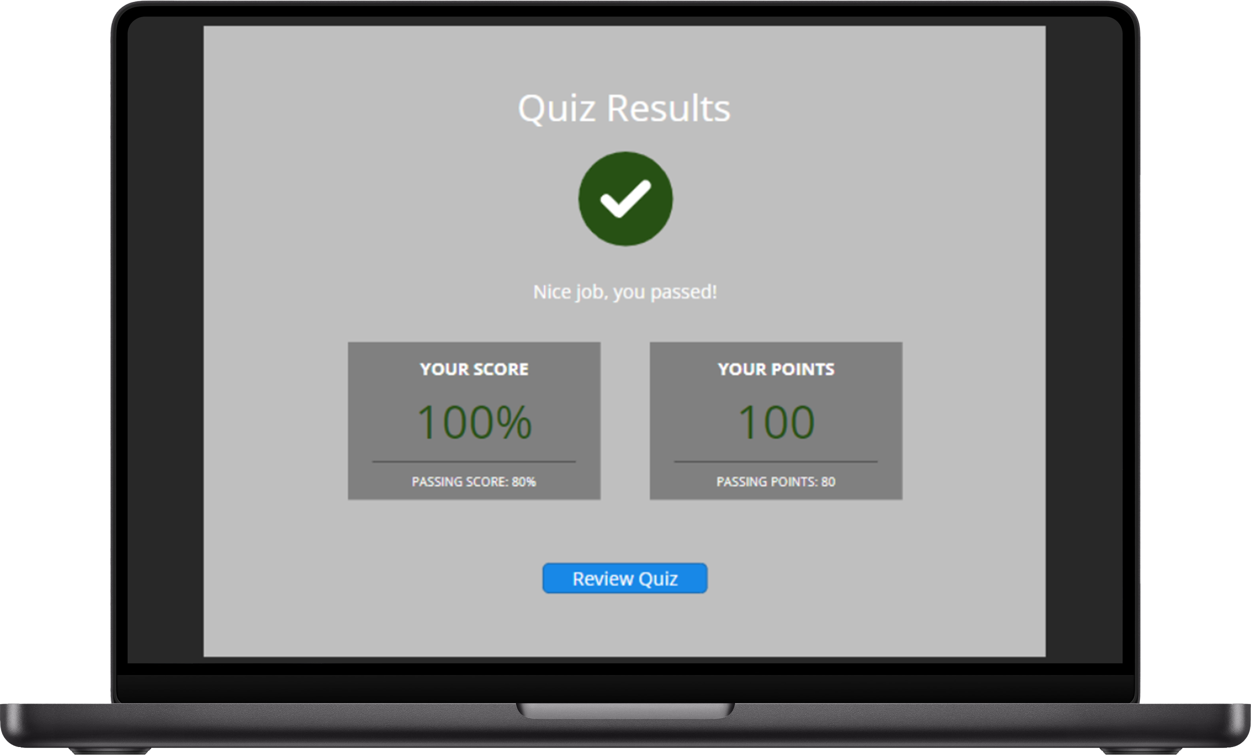 Second, I saw value in adding a starter quiz before the main training begins. While the final quiz was effective in measuring the learner’s progress, an introductory quiz could serve as both a baseline for comparison and a motivator for users. It would help highlight their starting point and give them a clear measure of improvement when they retake the quiz at the end of the training. This additional quiz could increase the impact of a good final score and make the training feel more rewarding. It would also provide me with valuable data, showcasing the effectiveness of the training content and validating its success in helping users grasp the core concepts.